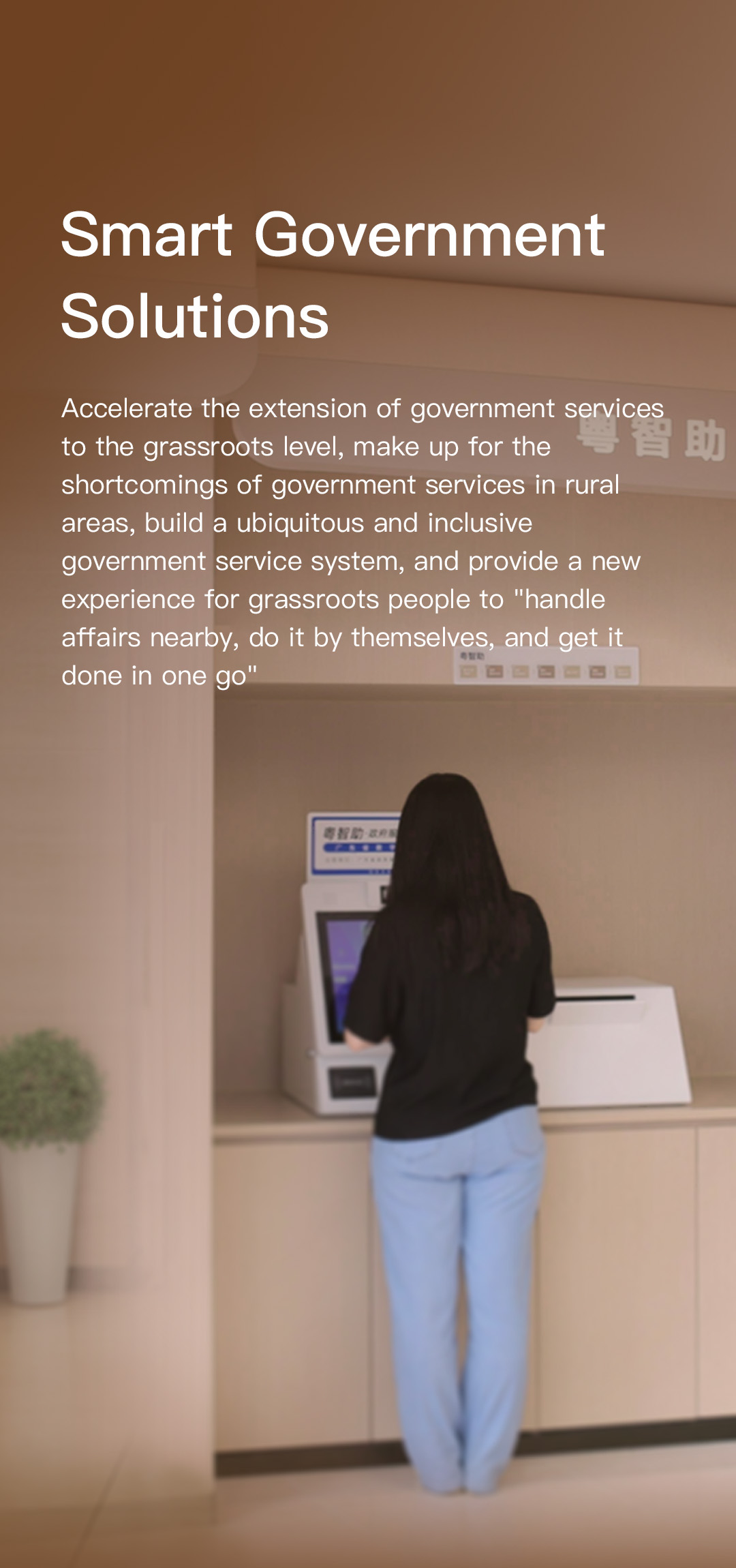深化“數(shù)字政府”建設(shè),提升政務(wù)服務(wù)能力,進(jìn)一步推動政務(wù)服務(wù)向基層延伸,實(shí)現(xiàn)基層群眾辦事“就近辦、自助辦、一次辦成”。